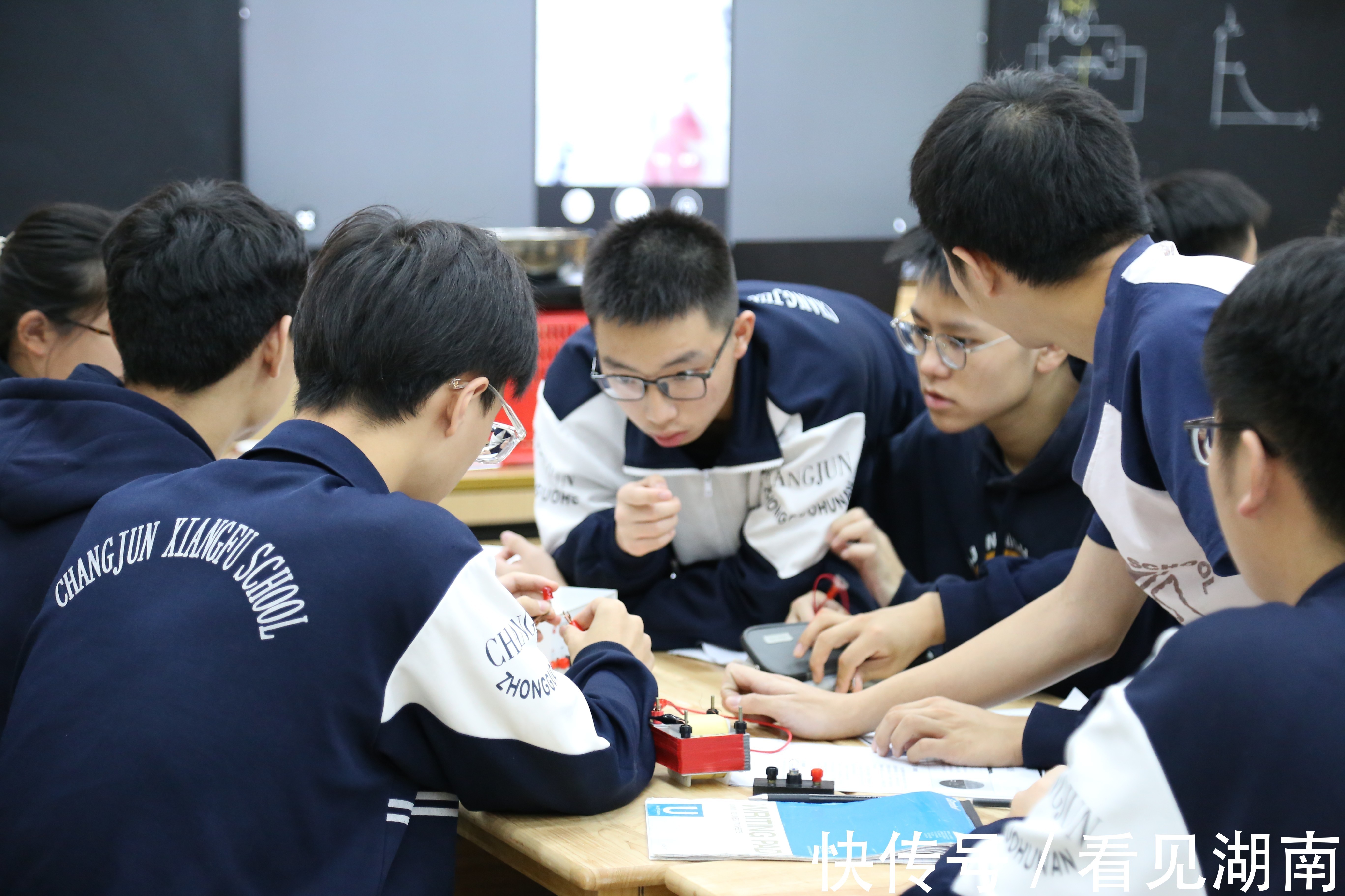 物理赛课以实验见长,注重学生的动手能力与思维拓展能力的培养,参赛教师们或以生活现象引入课堂,或以游戏考察吸引学生,比赛精彩纷呈。在实验环节,同学们在老师的指导下小组合作完成任务,既在《电磁感应现象及应用》的课堂了解了无线充电、电磁炉的工作原理,又在《生活中的圆周运动》课堂了解了火车转弯的力学奥秘,更在《波的反射、折射和衍射》的课堂重现了波光的炫目……参赛教师独具匠心的课堂设计,展示了物理学科的魅力,也再现了长沙市物理教学的趣味性与高水平。