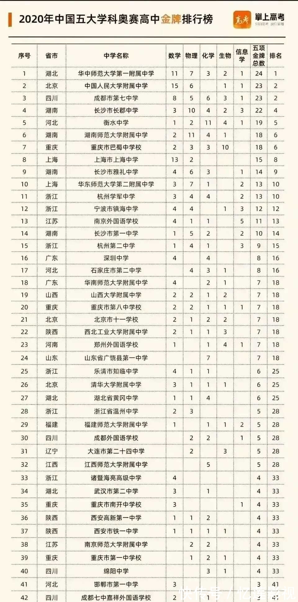 湖南师范大学附属中学是获得物理金牌最多的高中,达到11名。物理领域一直是湖师大附中的优势方面,得过很多奖。